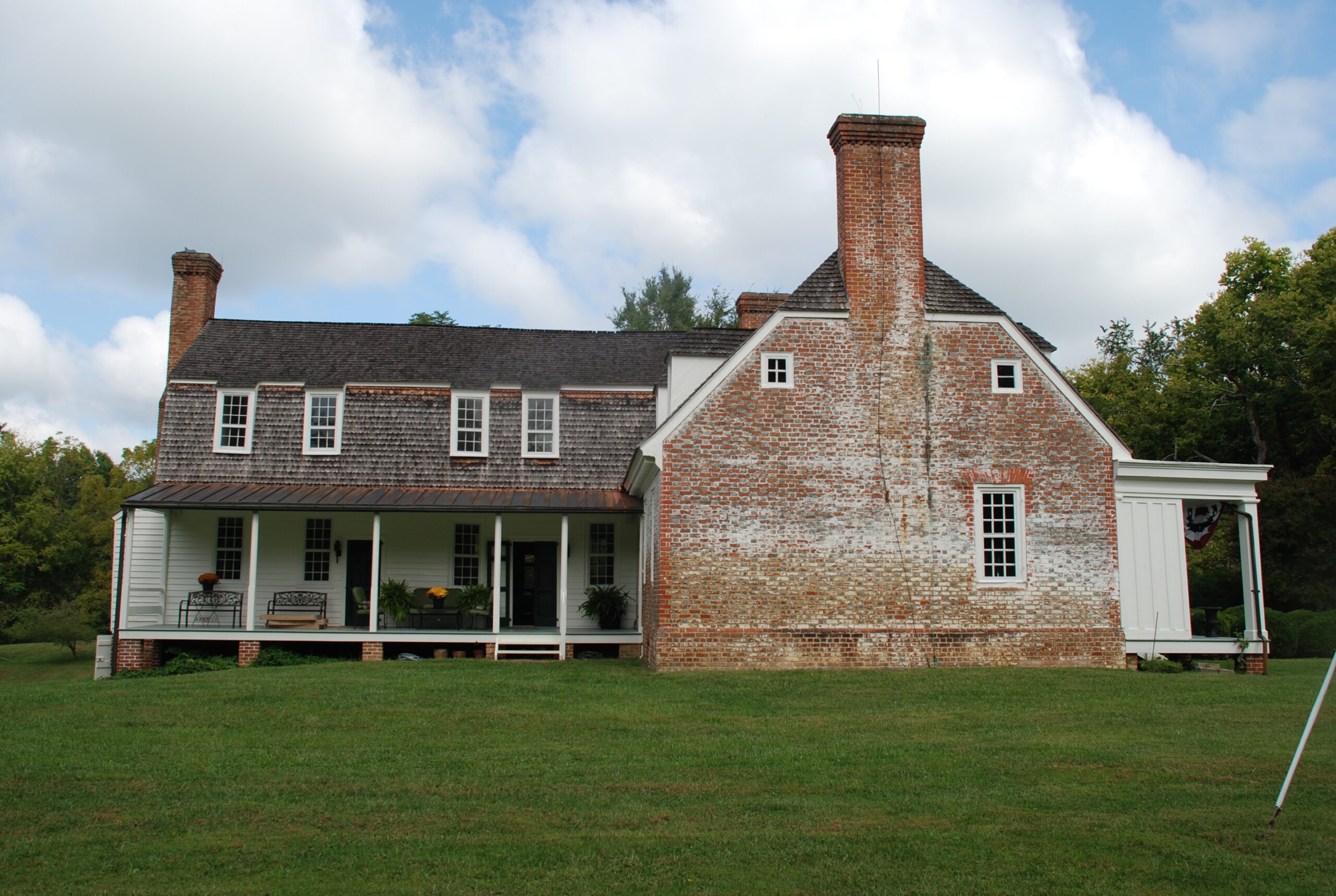 The Virginia Board of Historic Resources accepted Old Mansion, an 18th-century colonial manor house in Caroline County, as its first easement property in 1969, shortly after the house became listed in both the National Register of Historic Places and the Virginia Landmarks Register. Originally situated within a 3,000-acre land grant from Major George Thomas Hoomes in 1667, Old Mansion was constructed circa 1742, according to dendrochronological research. The dwelling was initially built as a one-and-one-half story masonry house. A two-story rear frame section was added to the house in 1791 and the front porch was constructed in the mid-19th century. While the interior layout has evolved somewhat over time, the house retains historic flooring and interior woodwork, as well as nine fireplaces.