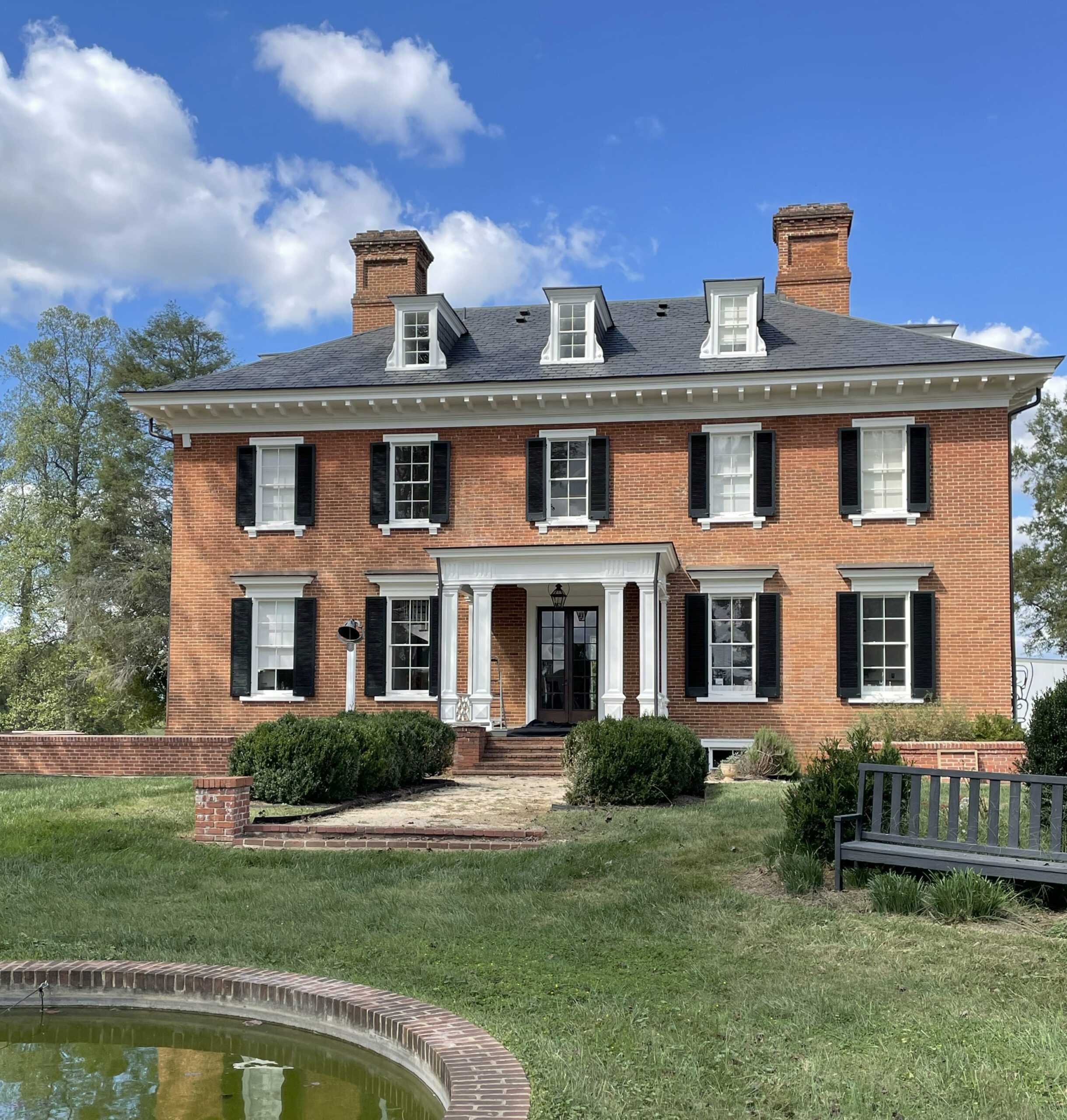 Established in the 1850s, northern Albemarle County’s Cobham Park is pre-eminent among Virginia antebellum estates. The grounds are laid out in the tradition of English romantic landscaping, with sloping lawns and clumps of trees informally arranged to make pleasing vistas. The property originally was the summer home of William Cabell Rives, Jr., second son of William Cabell Rives of Castle Hill. The house, built ca. 1855, shows unusually early Georgian Revival influences, having the character of an 18th-century mansion. It was executed by E. S. McSparren, an English master carpenter who also worked at Grace Church, Cismont. The cynosure of the interior of Cobham Park is the flying spiral staircase, a carpentry tour-de-force. The Cobham Park estate, which straddles the Albemarle and Louisa county line, was purchased in the early part of the 20th century by the Peter family of Tudor Place, Washington, D.C. and served as a Peter country home until the 1970s.