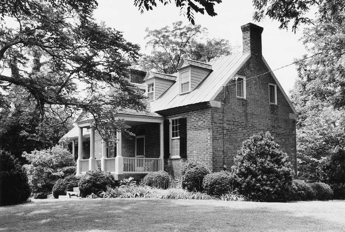 In a pastoral setting above the James River in Bedford County, the compact early-19th-century farmhouse of Hope Dawn is a refined and well-preserved example of Piedmont Virginia’s Federal vernacular. Its finely crafted details and balanced proportions illustrate the high standards maintained by builders even for modest houses in relatively remote areas. Noteworthy features are the original porches, the Flemish-bond brickwork, and the finely detailed Federal mantels based on designs in Owen Biddle’s The Young Carpenter’s Assistant (1805). The construction date is uncertain. The house may have been standing when the property was acquired in 1827 by Dr. Howell Davies, a Lynchburg druggist, who used Hope Dawn as a country home. Preserved in front of Hope Dawn is a short section of the old Bethel Road, an early turnpike. The road is still lined with its original stone retaining walls and dressed-stone gateposts.
