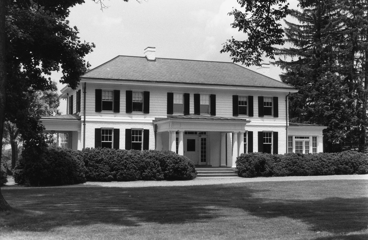 This architecturally refined residence was built in 1914 on the site of a Federal-period house that burned. The design represents an accomplished melding of the Georgian Revival and Craftsman styles popular during the period. The Lynchburg firm of Heard and Cardwell designed a 1918 addition and likely designed the main part as well. Defining features are the spreading hipped roof, symmetrical facade, and unaltered interior woodwork. A garden terrace, designed by Washington landscape architect George E. Burnap in 1918, joins a combined dovecote/garden seat, a pumphouse, and several ancillary structures. Lynchburg architect Stanhope Johnson designed the distinctive gateposts. Behind the house are farm buildings viewed against a panoramic backdrop of the Blue Ridge Mountains. Rothsay was built for Octavius Loxley Clark Radford (1870-1935), who maintained one of the largest and most progressive farming operations in the county. Rothsay remains the property of his descendants.