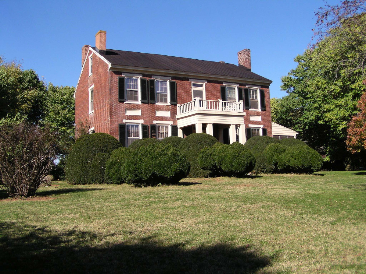The heart of the historic Bedford County farm known as Pleasant View is an elegant brick manor house erected circa 1840. Located between the town of Bedford and the city of Lynchburg, the house is best described as Classical Revival in style but possessing many features associated with the popular Greek Revival style of the time. Distinguishing features include front doors on both the first and second floors and paneled interior doors and jambs. It is very similar to nearby Terrace View, which is believed to have been built by close relatives of Pleasant View’s owners. Together, the houses represent the height of the domestic Classical Revival style in provincial Bedford County during the mid-19th century. Pleasant View is today the better preserved of the two houses and is one of the best-preserved historic homes in the region. The landscape surrounding the house also remains intact. Several domestic structures survive from the 19th century, including a servant’s quarters, smokehouse, and brick cistern. One of the early owners of Pleasant View, Dr. Granville Brown, is buried in the stone-walled cemetery.