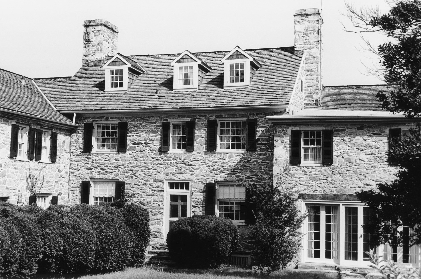 The complex of structures that make up The Mill House property, located in Fauquier County’s Cromwell’s Run Rural Historic District, reflects an early gristmill operation and the area’s 20th-century hunt-country society. A mill was operated here by Charles Chinn as early as 1768. Leven Powell, founder of the nearby town of Middleburg, was responsible for many of the present buildings, including the mill, the miller’s house, the cooper’s house, a dairy-smokehouse, and the mill owner’s house (now the centerpiece of the complex). After the mill ceased operation, the Fauquier County property took on an entirely new aspect with its purchase by John S. Phipps, son of Henry Phipps, a partner of Andrew Carnegie and founder of the United States Steel Corporation. From 1924 to 1929 Phipps enlarged the house, converted several outbuildings to guest quarters, added a stable and swimming pool, and united the complex with landscaping. Though today a splendid country estate, the rustic character of The Mill House property has been maintained.