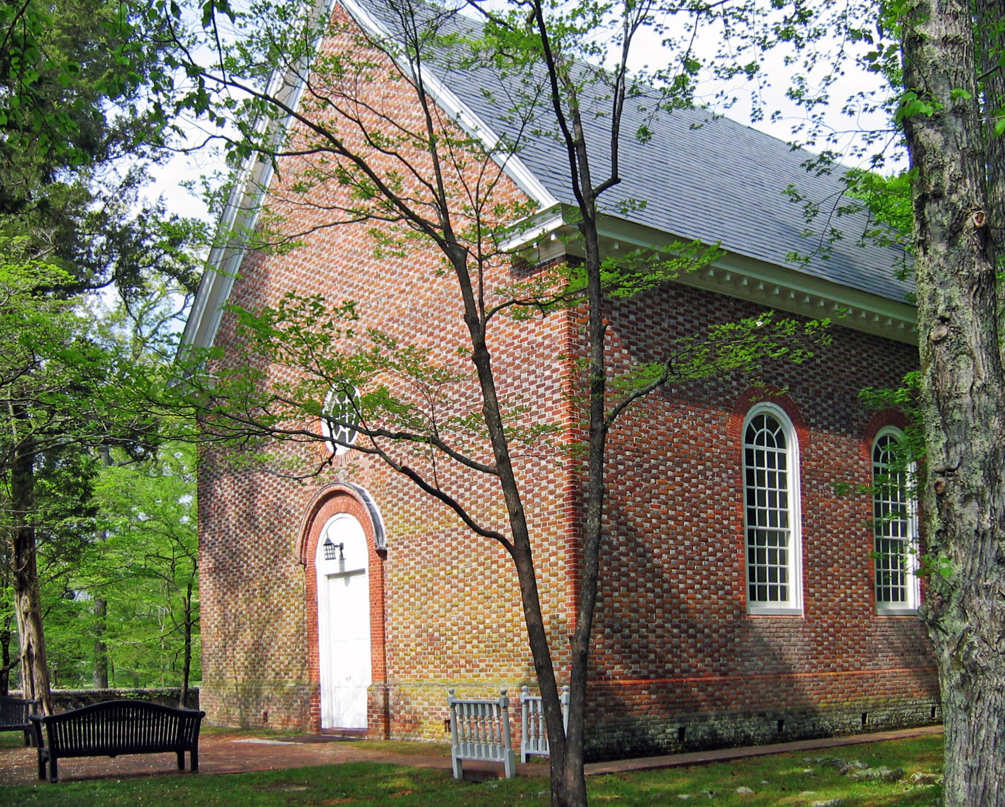 Standing a few miles east of the Gloucester County seat, Ware Parish Church is one of the largest parish churches erected in colonial Virginia. The building has traditionally been assumed to date somewhere between the 1690s and the 1720s; a dendrochronological investigation in the early 21st century suggests that the roof was constructed during 1719, with some preparatory work possibly being done during 1718. Few of Virginia’s colonial churches can boast more handsome or better preserved brickwork, which here consists of Flemish bond with clear blue glazed headers and gauged brick arches. The plan of this brick building originally consisted of a double aisle with a central entrance on the west gable and chancel doors on both the eastern end of the south and north walls, an unusual arrangement for a Virginia church where there was generally only a single chancel door. The interior was completely gutted in the 19th century and reworked again in the 20th century so that no original fabric except a small west gallery survives from the colonial period. Although abandoned following the disestablishment, the Ware Parish Church was later reoccupied by the Episcopalians and continues to serve as a parish church.
