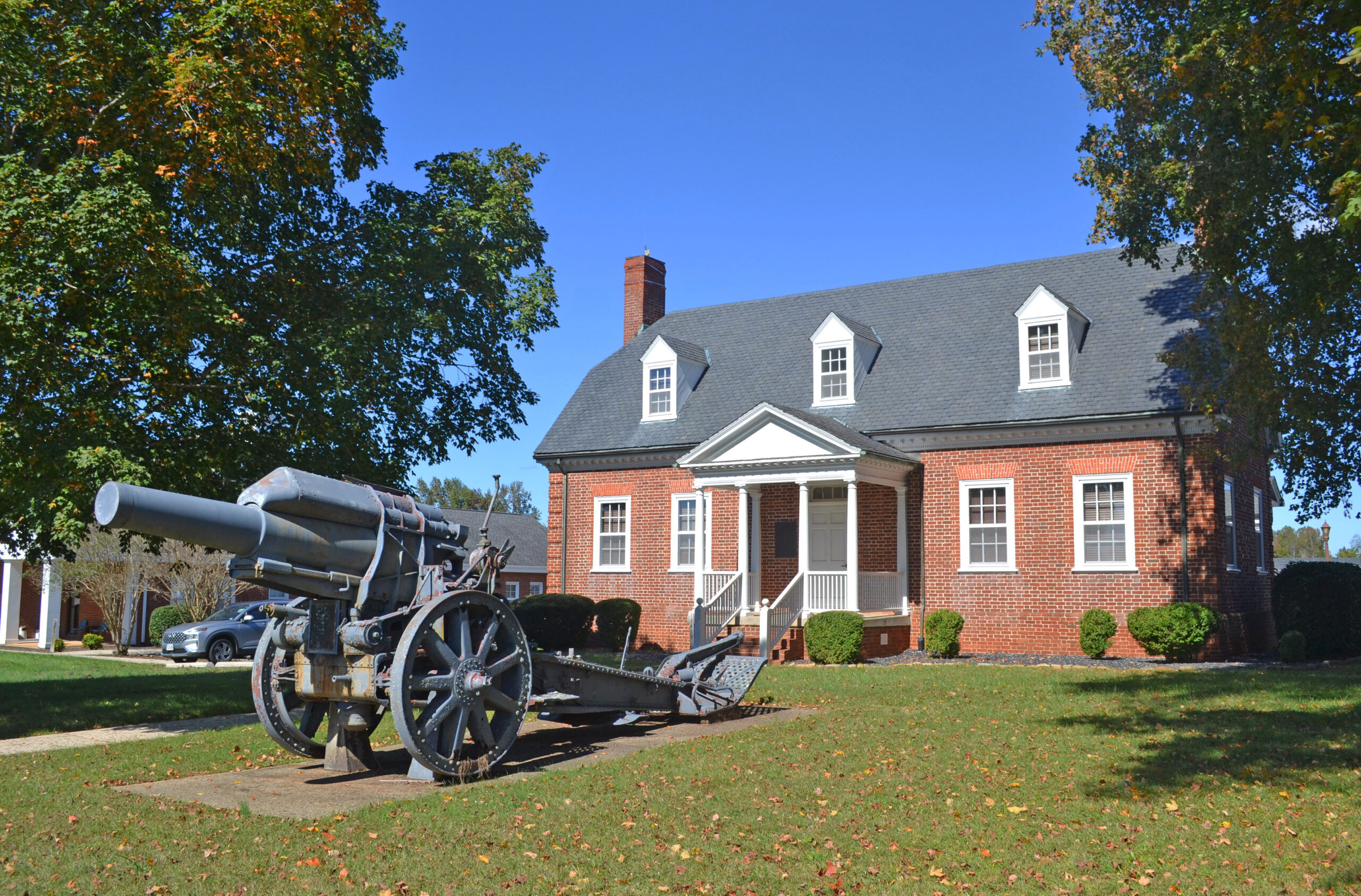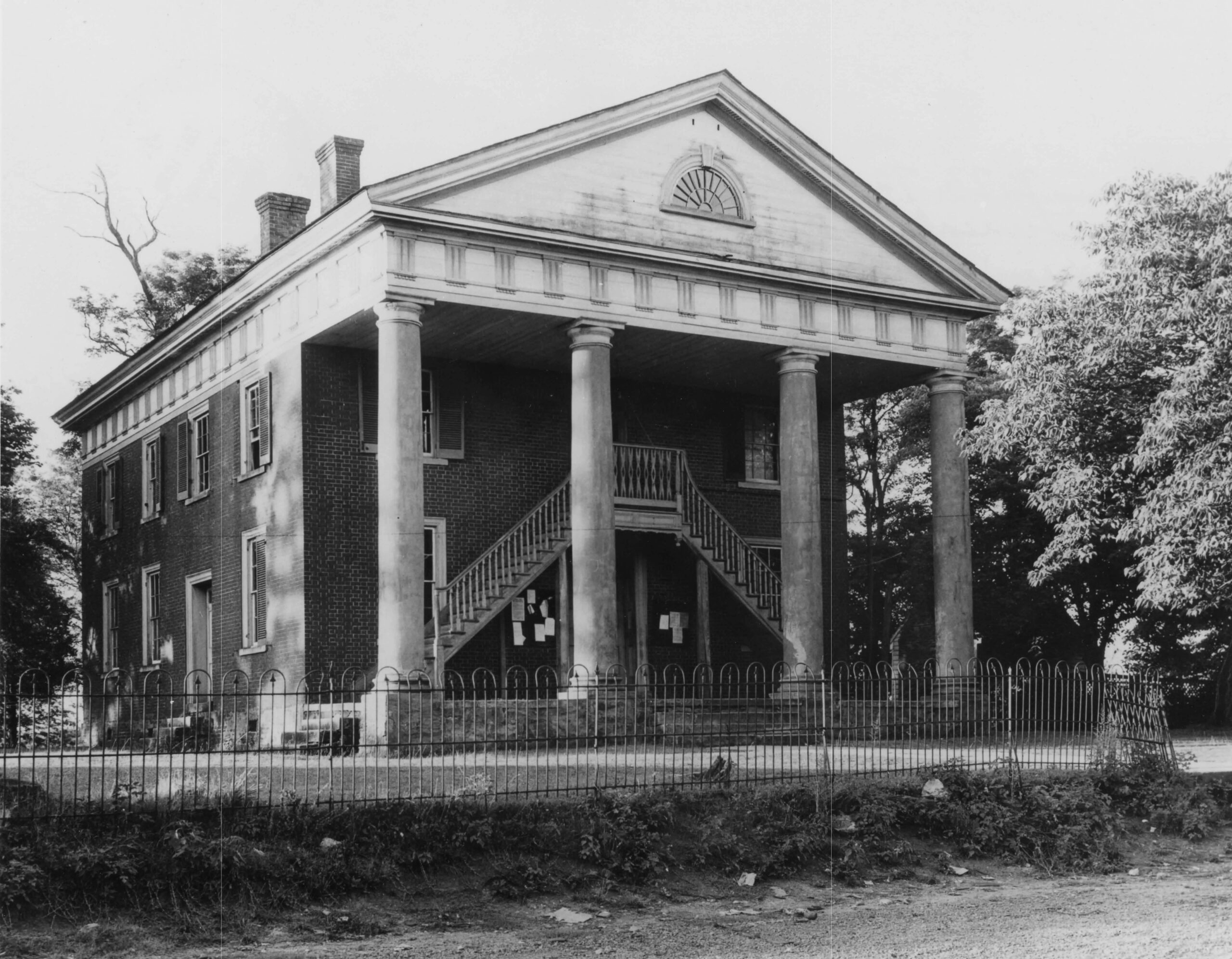 This rural Southside county seat, still barely more than a crossroads, is dominated by its dignified Roman Revival courthouse, one of the group of public buildings reflecting the influence of Thomas Jefferson’s strict classicism on rustic Virginia. The commission appointed to supervise the project directed that the Lunenburg County Courthouse be modeled after the newly completed courthouse in Charlotte County, designed by Jefferson himself. Builders William A. Howard and Dabney Cosby, Sr., admirably carried out their task, completing the academically correct design in 1827. Here the stately Roman Doric order was employed rather than the more usual Tuscan. The exterior stairs were added in 1850 when the interior was divided into two levels. An original apsidal end was later encased in an extension. Surrounded by farmland, the tiny Lunenburg Court House settlement presents a memorable picture with the gleaming courthouse portico looming above the sprinkling of 19th-century structures.