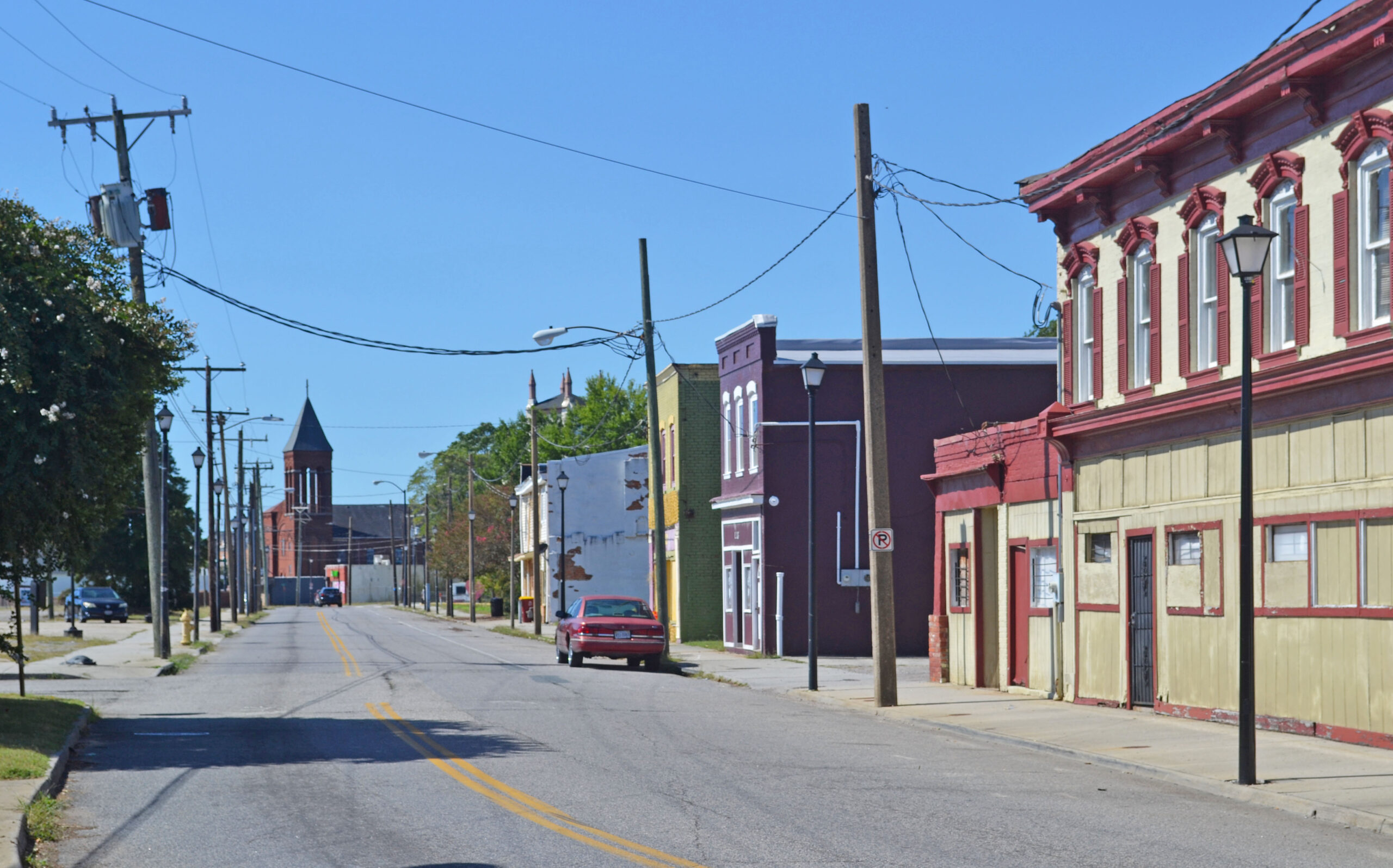 The Halifax Triangle and Downtown Commercial Historic District consists of two distinct but interrelated areas that tell the story of African American culture, commerce, and experience in Petersburg from the mid-19th-century through the present day. The northern part of the district arose as a thriving downtown commercial district as the city’s growth and prosperity extended northward during the mid-20th-century. This area contains high-style Victorian-era commercial and industrial buildings, a Classical Revival church, and a bus station. The southern portion of the district, primarily set along Halifax Street, evolved in the mid-20th-century as a prosperous and cohesive yet segregated African American community complete with businesses, residences, churches, and an open market containing smaller-scale Italianate-style and vernacular commercial buildings. As race relations remained tense in the second half of the 20th century, coupled with severe economic struggle and subsequent “white flight” throughout Petersburg, the African American neighborhood expanded into the northern portion of the district and combined with the Halifax Street area to become a larger yet still cohesive commercial district. Today, the district struggles with blight and poverty, but remains as an important center and reminder of the African American heritage of Petersburg. The oldest building in the district is the Greek Revival Washington Street Methodist Church, constructed in 1842. Other buildings in the district individually listed in the state and national registers include a Moderne-style Trailways Bus Station and the 1851 Second Empire-style Cohen House. The Halifax Triangle & Downtown Commercial Historic District’s period of significance ends in 1964, when Joseph Owens, a Halifax Triangle resident and business owner, became the first African American elected since Reconstruction to serve on Petersburg’s City Council.