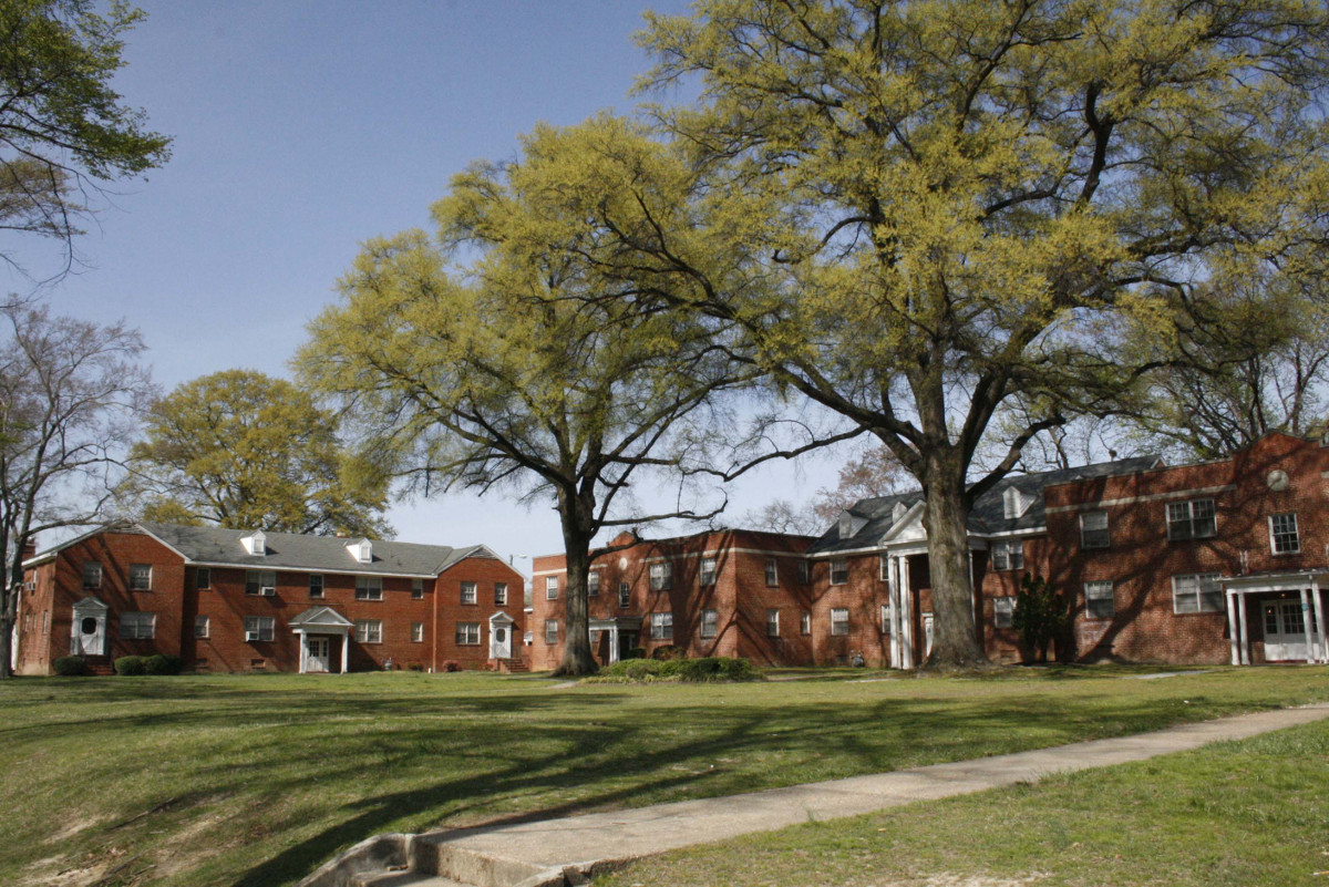 Built in two phases between 1945 and 1947, Wicker Apartments—known at the time of its listing as Bellevue Apartments—is a well-preserved example in the city of Richmond of a mid-20th-century garden apartment complex. Richmond architect W. Harrison Pringle designed the complex, and Earl H. Wicker, a prolific local contractor and developer whose career spanned more than 50 years, owned and built it under Federal Housing Administration guidelines. Only one of three World War II-era garden apartment complexes remaining in Richmond that FHA funded, it exemplifies the middle-class urban apartment type that FHA encouraged from the 1930s into the immediate post-World War II years to alleviate the nation’s chronic housing shortage. The Wicker Apartments complex embodies the essential principles the FHA espoused, as characterized by tasteful landscaping and open park-like settings, brick construction, generous interior light and ventilation, and low-rise, harmonious buildings without lobbies or elevators.