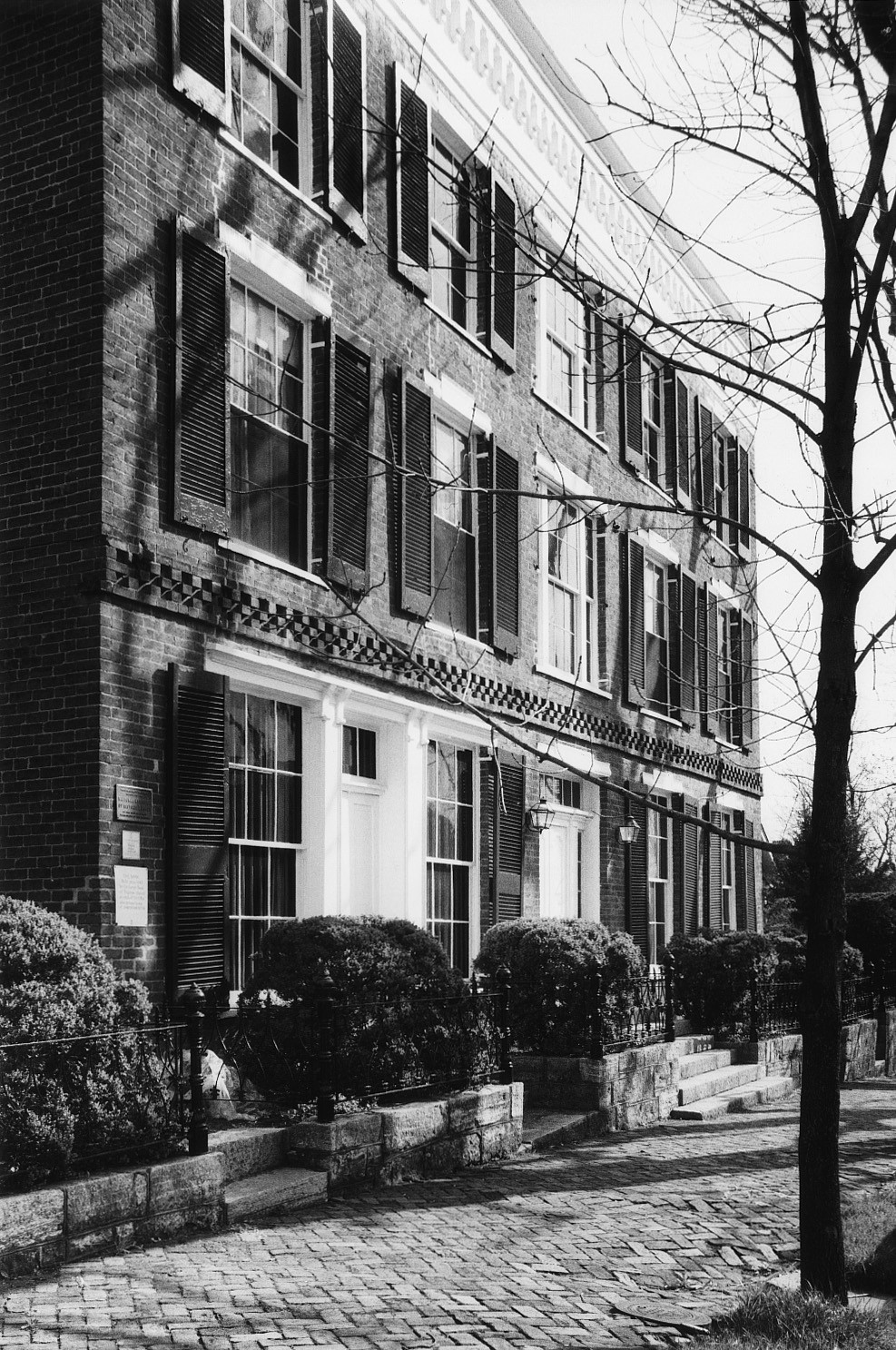 Early 19th-century bank buildings often were barely distinguishable from fine town houses because they incorporated the residence of the cashier, a respected local figure. These banks usually had two entrances, one for the banking area and one leading to the private quarters, and most had three stories because the residential section had at least two levels. The Abingdon Bank, erected in 1858 for Robert Preston, first resident cashier, is an excellent illustration of this early commercial type. The banking area retains its large windows with iron bars and its vault. The plain interior trim of the residential section contrasts with the elaborate brick cornice and belt course of the exterior. No longer a bank, the building has been restored to serve as a private residence and remains an important element of the street facade of Abingdon’s historic Main Street.