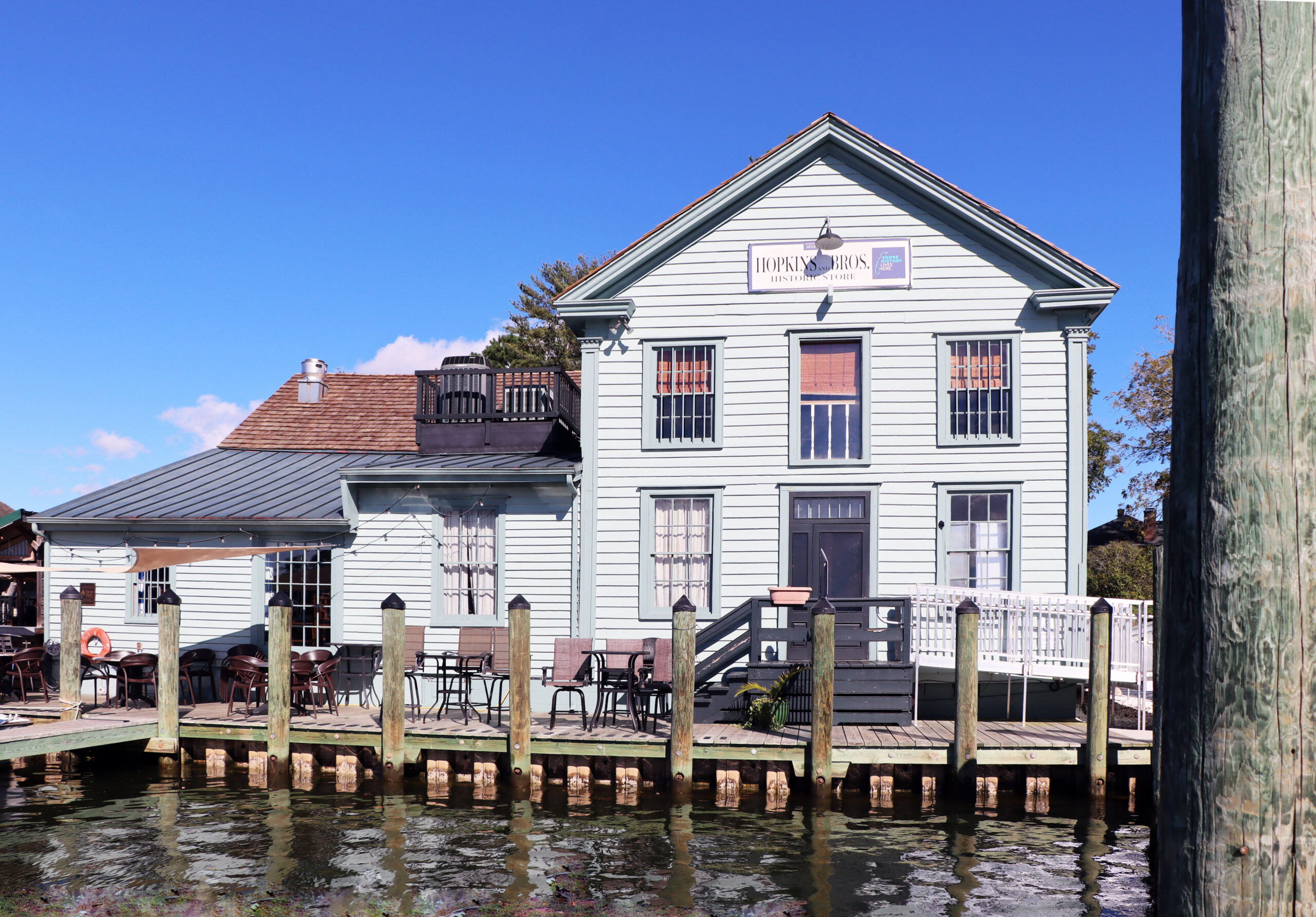 The bracketed and weatherboarded Victorian Hopkins and Brother Store building on the waterfront of the Accomack County town of Onancock housed a business founded in 1842 by Capt. Stephen Hopkins. Selling general goods, the business remained in the hands of the Hopkins family until 1965. Although the building has been moved a short distance, it retains the relation to the waterfront it enjoyed when the store was a commercial and maritime trading center for the town as well as the Eastern Shore’s bayside. The interior has most of its 19th-century fittings and illustrates the maritime mercantilism of a small Chesapeake region town. Detailed records of the establishment are preserved at the Virginia Museum of History and Culture. The Hopkins and Brother Store, which contributes to the Onancock Historic District, was deeded by the Hopkins family to the Association for the Preservation of Virginia Antiquities (now Preservation Virginia), and it was repurposed for use as a restaurant.